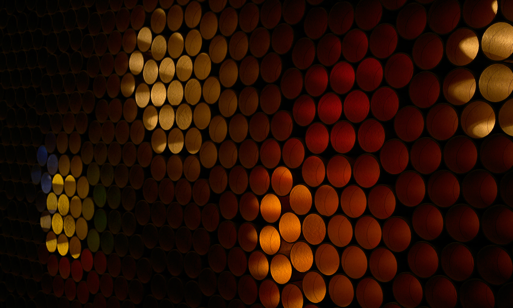El rigor geomètric del cilindre es transforma en una màgica gelosia que mostra només seqüencialment el seu contingut, provocant el descobriment successiu i individual de les llanternes al seu interior en funció de la velocitat i la distància de l'espectador.